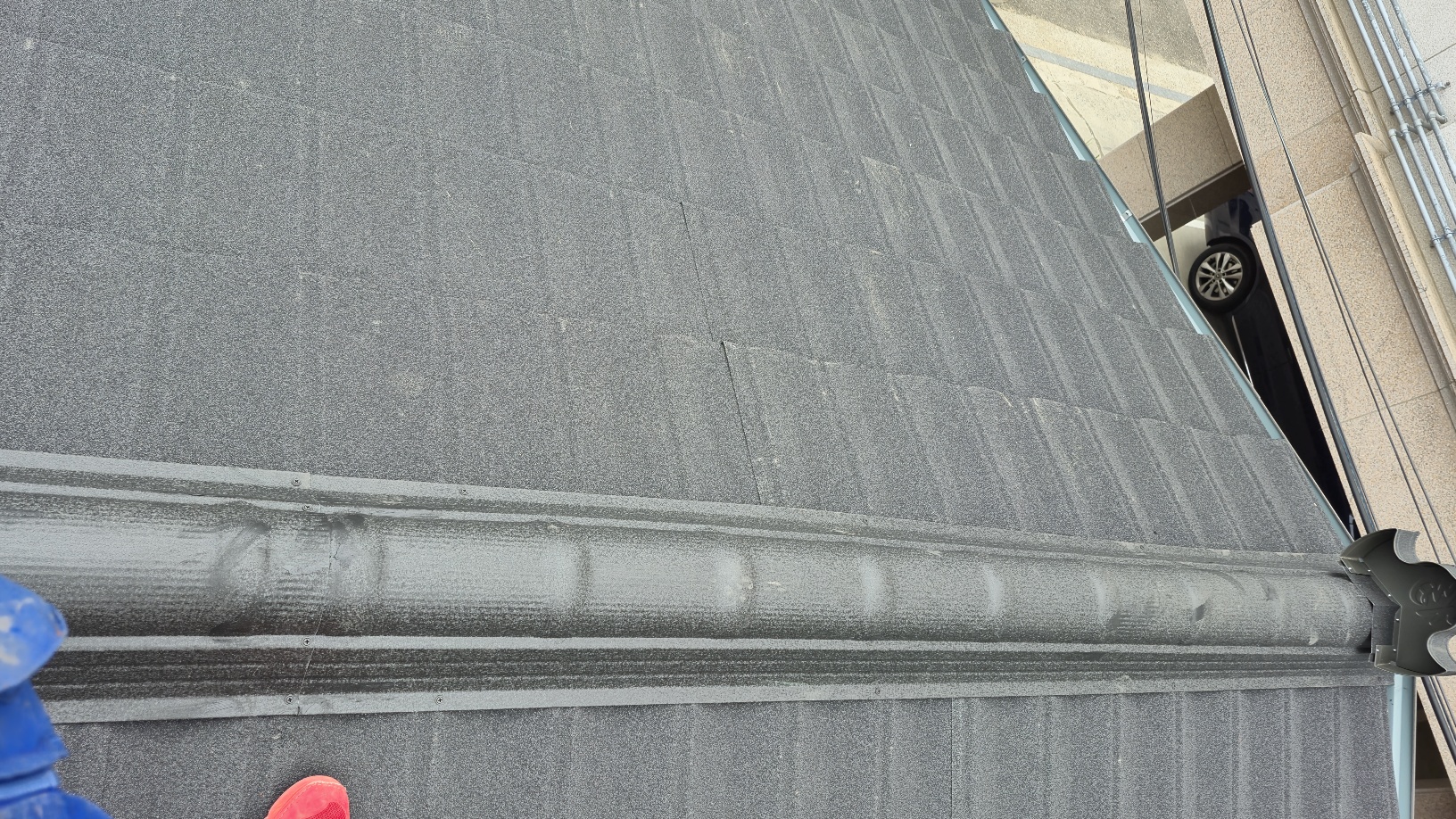 지붕을 따라 처마 끝에 빗물받이와 덴조공사를 함께해서