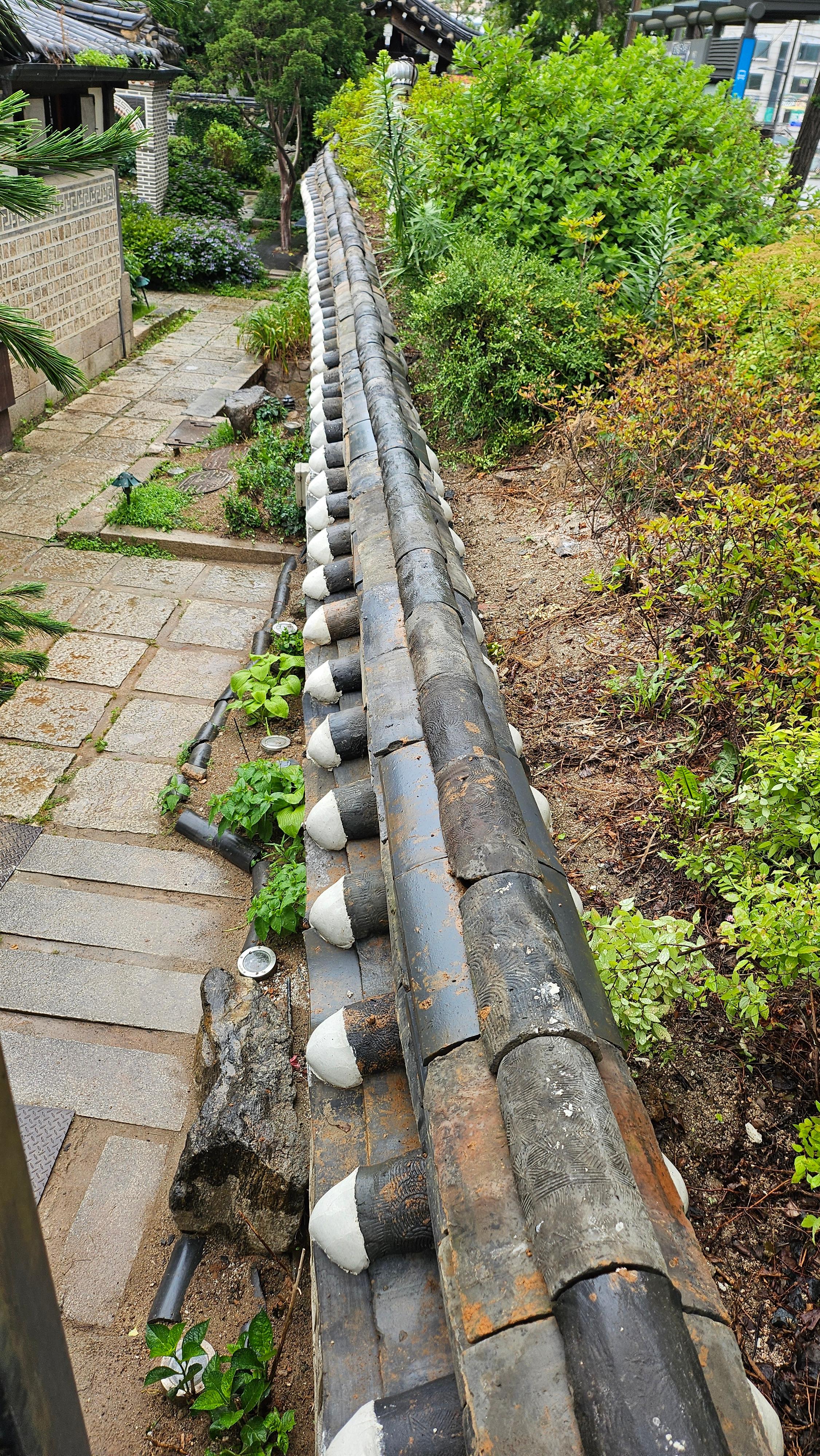 생각보다 많은 구간의 한식기와와 담장 벽돌이 무너져 내린 상태였습니다.