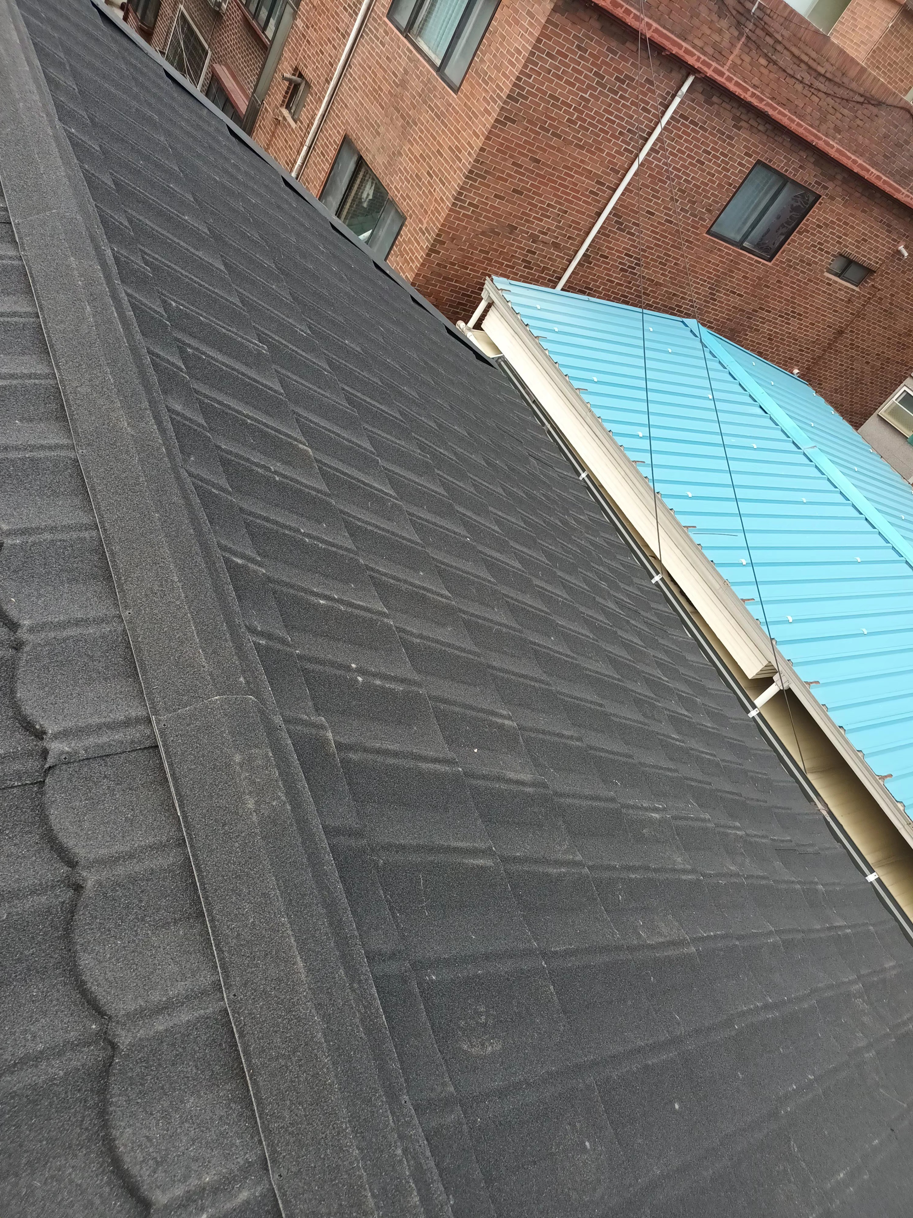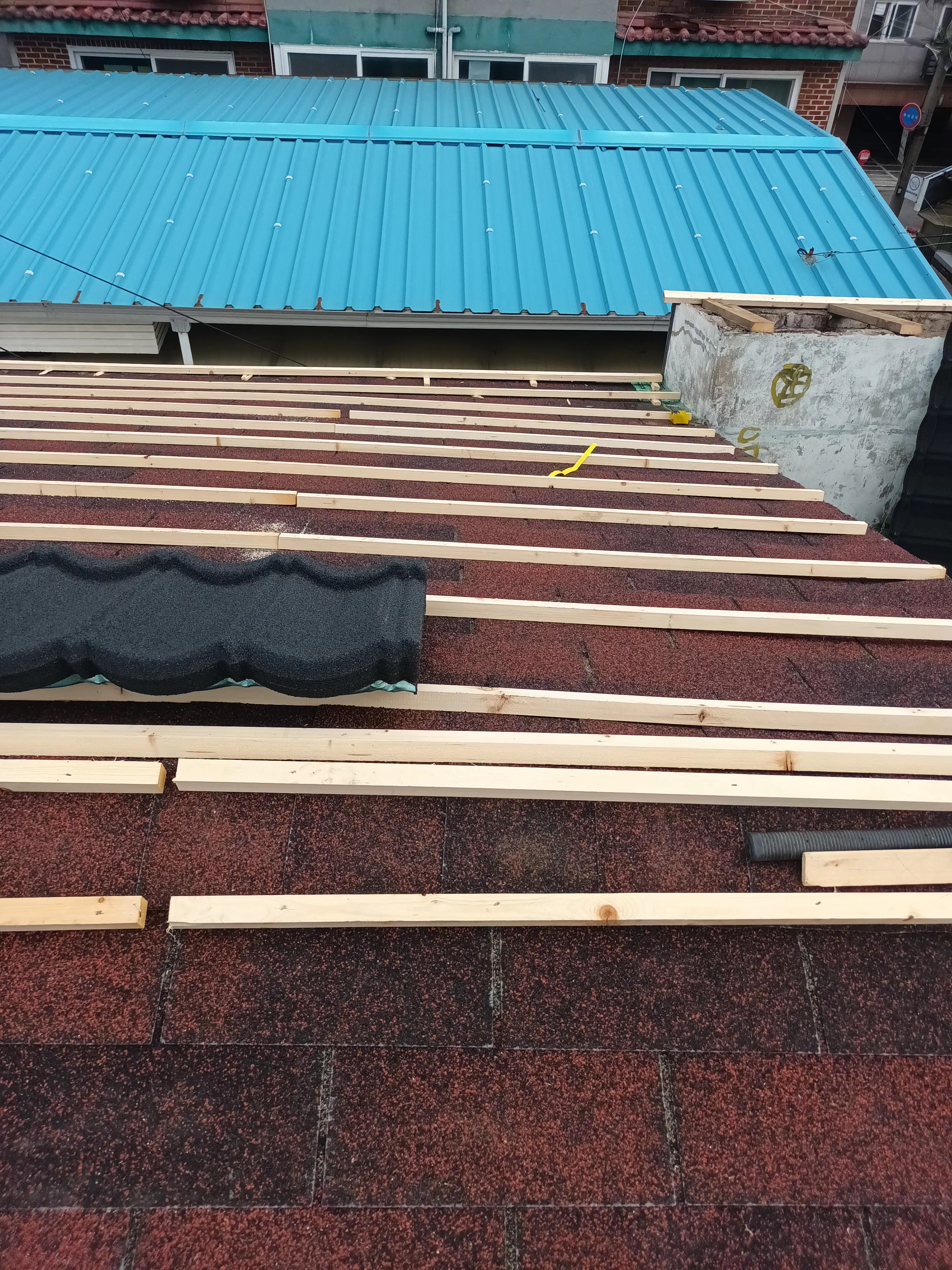 위 사진과 같이 기존 지붕자재는 아스팔트슁글 지붕자재가 사용되고 있었는데